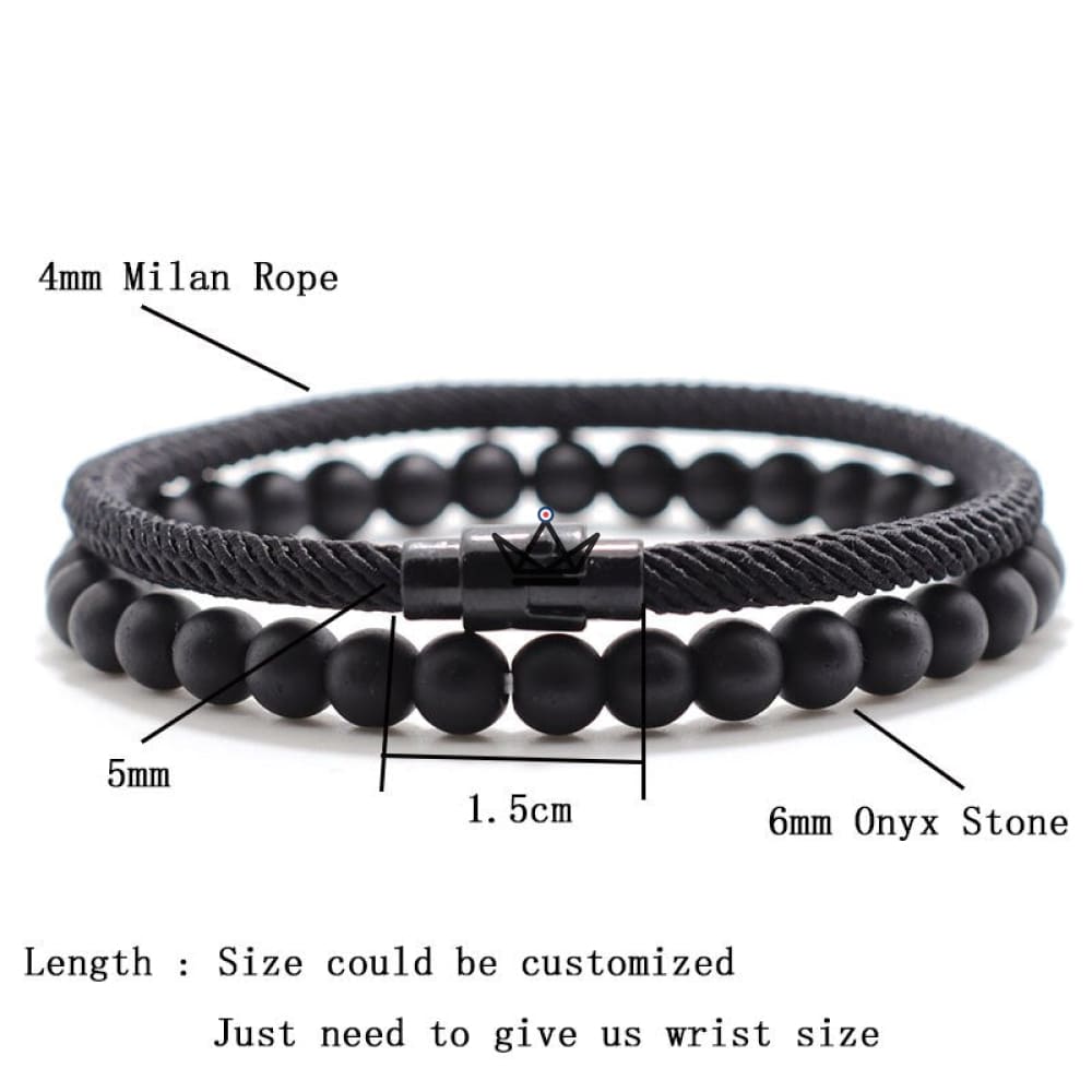 Le pack de bracelets minimaliste DUO - ELEMENTARY STONE est une combinaison parfaite entre simplicité et élégance. Il se compose d'un bracelet cordon minimaliste à fermoir magnétique et d'un bracelet en pierre d'onyx, connue pour sa capacité à purifier le karma.