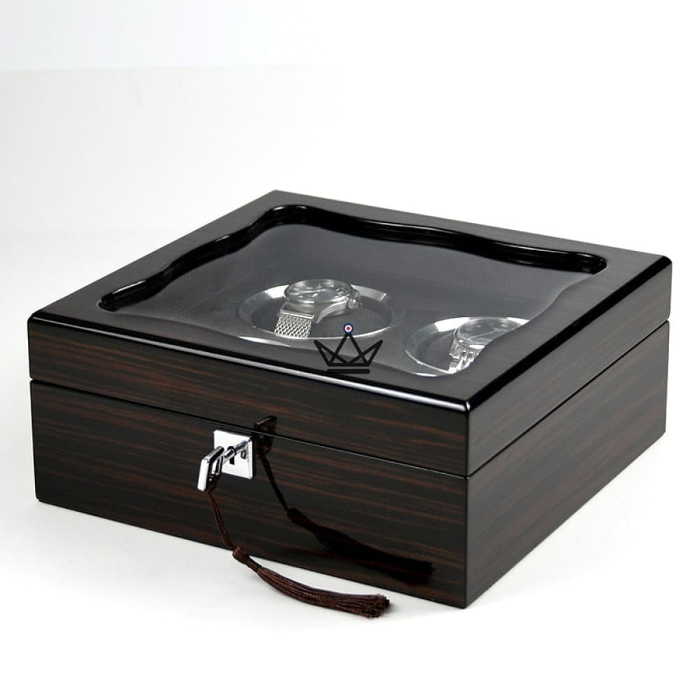 Le couvercle de la boîte est pourvu d'une vitre qui vous permet de visualiser facilement vos montres à l'intérieur, tout en les protégeant de la poussière et des rayures. Il se ferme avec une clé pour assurer une sécurité supplémentaire.