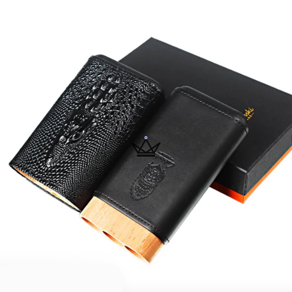Entdecken Sie das Wild Cedar Travel Cigar Case, ein Luxusaccessoire für leidenschaftliche Zigarrenliebhaber. Dieses Etui besteht aus einer raffinierten Mischung aus hochwertigem Rindsleder und Zedernholz und bietet eine perfekte Kombination aus Eleganz, Funktionalität und Konservierung Ihrer Zigarren.