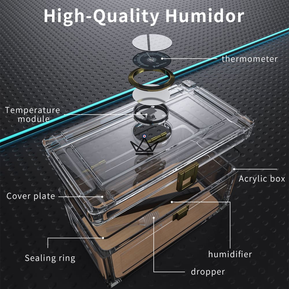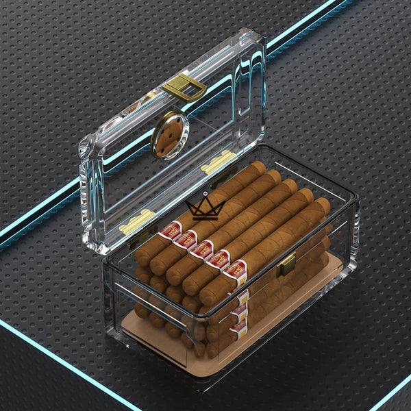 Dieser hervorragende transparente Humidor kann dank seiner Acrylkonstruktion bis zu 20 Ihrer Lieblingszigarren enthalten.