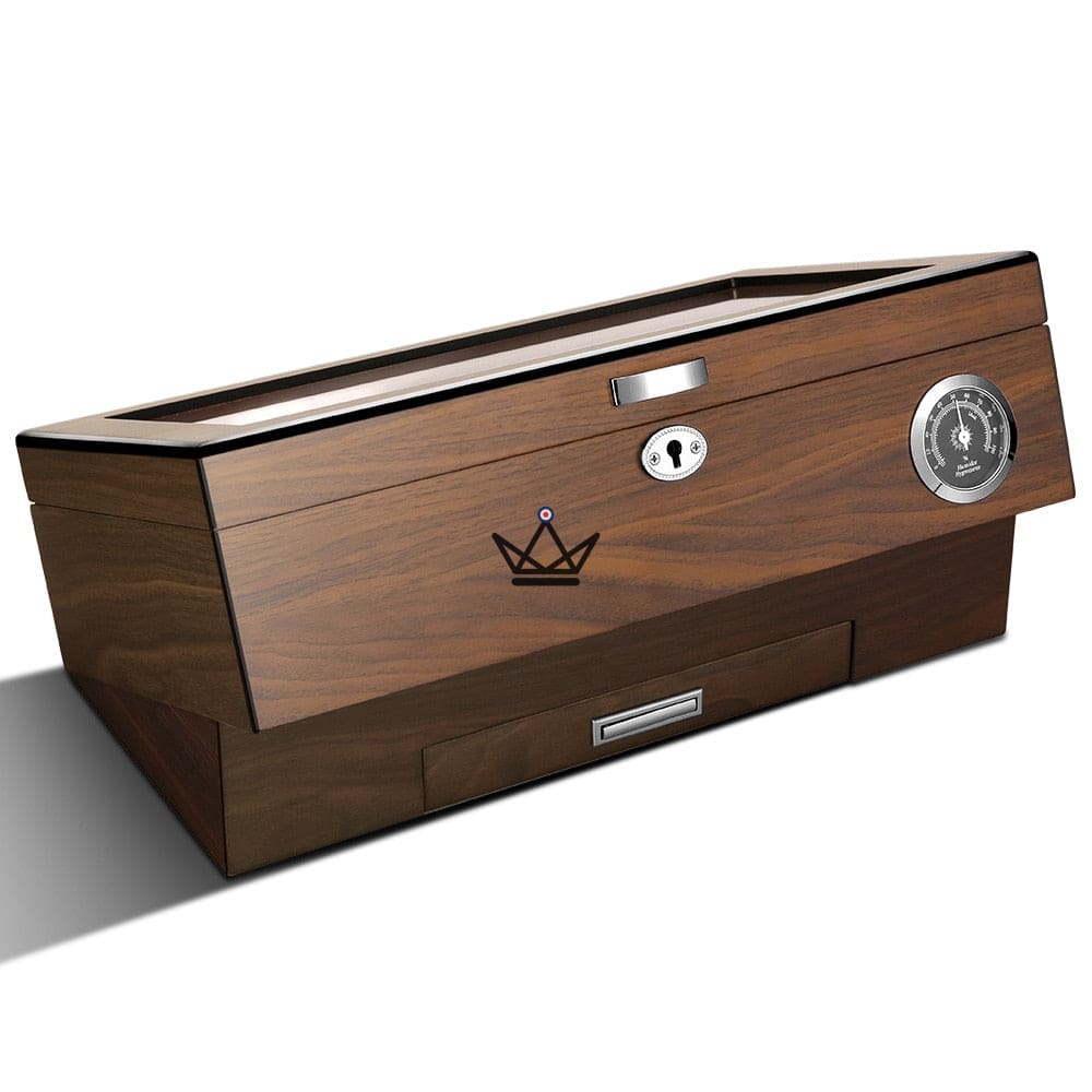 Der KHEOPS Century Zigarren-Humidor ist viel mehr als ein einfacher Aufbewahrungsort, er ist ein echtes Dekorationsobjekt, das Ihrem Interieur einen Hauch von Eleganz verleiht. Metallscharniere sorgen für Langlebigkeit und Zuverlässigkeit, während das mitgelieferte Hygrometer und der Luftbefeuchter es Ihnen ermöglichen, die optimale Luftfeuchtigkeit zu kontrollieren und aufrechtzuerhalten, um die Frische und Aromen Ihrer Zigarren zu bewahren.