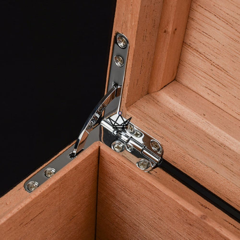 Das in die Oberseite integrierte Glasfenster bietet auch im geschlossenen Zustand einen direkten Blick auf Ihre Zigarren. Dieses ästhetische Detail sorgt für die Stabilität der Luftfeuchtigkeit und verleiht gleichzeitig einen Hauch von Raffinesse.