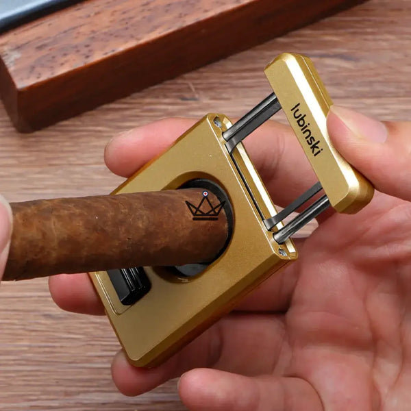 - Elegantes Design : Mit seinen klaren Linien und dem robusten Metallgehäuse verkörpert der King Expert Zigarrenschneider Eleganz. Seine glänzende Oberfläche und die raffinierten Farben machen es zu einem echten Luxusartikel, den Sie Ihrer Sammlung hinzufügen können.