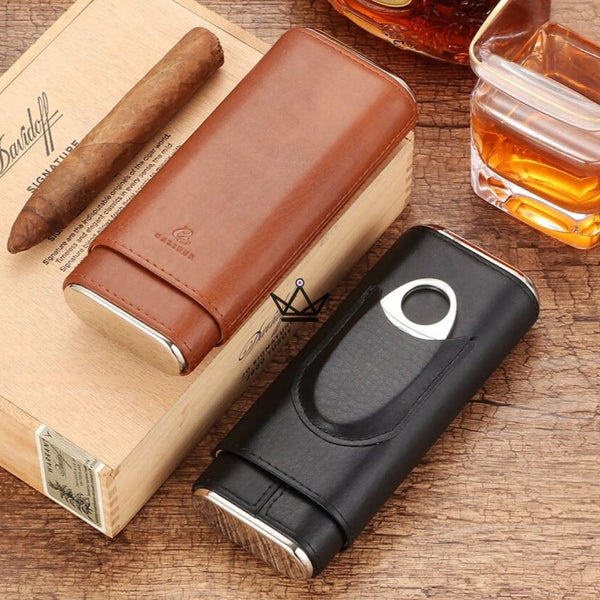 Etui für 3 Zigarren und Zigarrenschneider - NEBOS