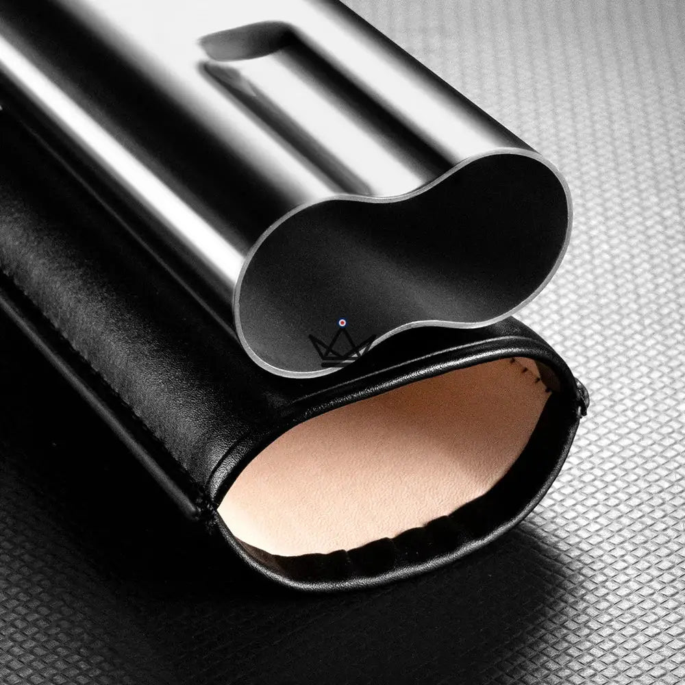 Jedes Stück ist mit einem stilisierten, künstlerischen Muster geprägt, das ihm eine unverwechselbare und raffinierte Note verleiht. Sein sicheres Inneres bietet Platz für zwei Zigarren und bewahrt gleichzeitig deren Integrität, Feuchtigkeit und Aroma, auch unterwegs.