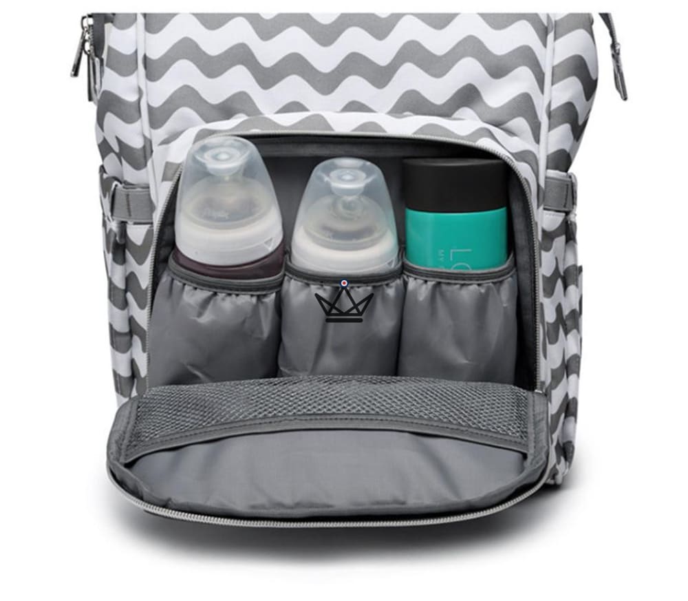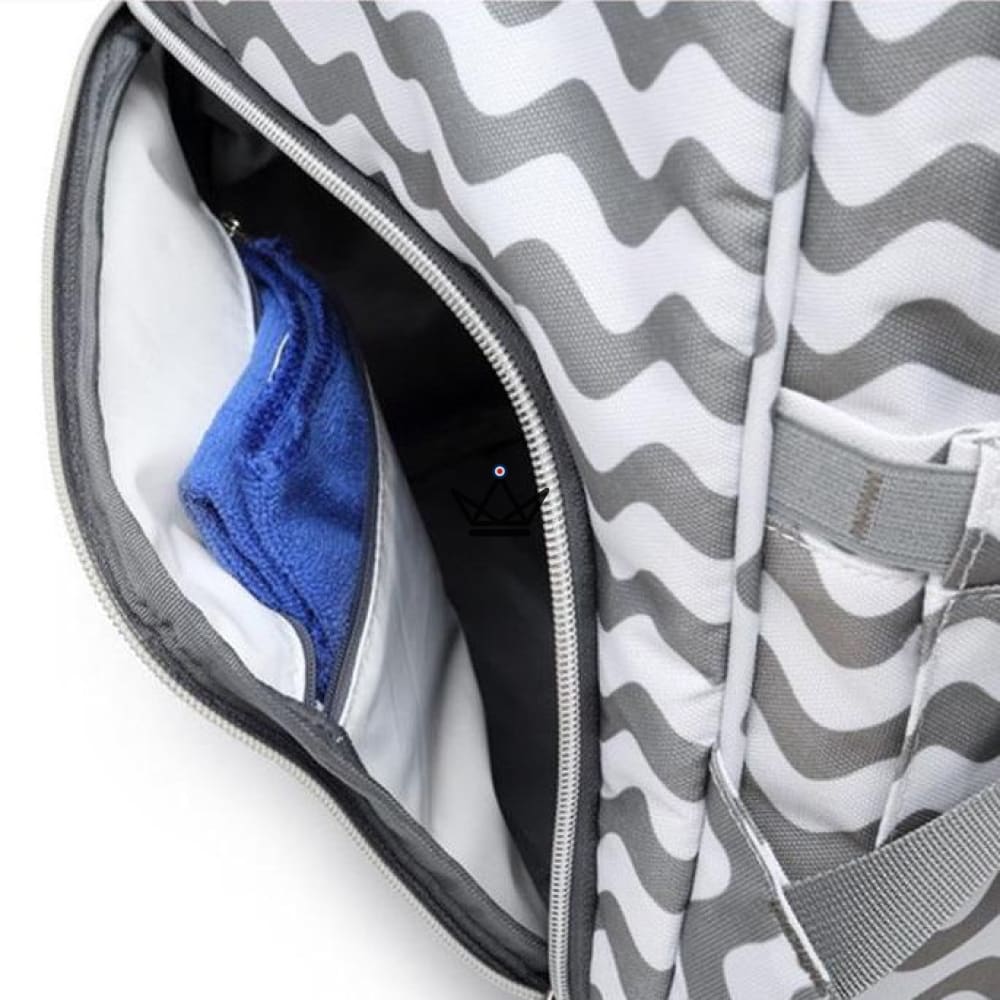 Es besteht aus mehreren sehr praktischen Taschen, in denen Sie alles transportieren können, was Sie für das Wohlbefinden Ihres Kindes benötigen (Windeln, Flasche, Handtuch, Spielzeug usw.)!