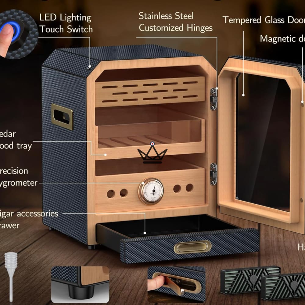 The Prestige Cedar Lux Cigar Humidor embodies the ideal combination of refined design , advanced preservation technology and noble materials . Designed for true enthusiasts, it guarantees optimal storage while enhancing the presentation of your cigars.
