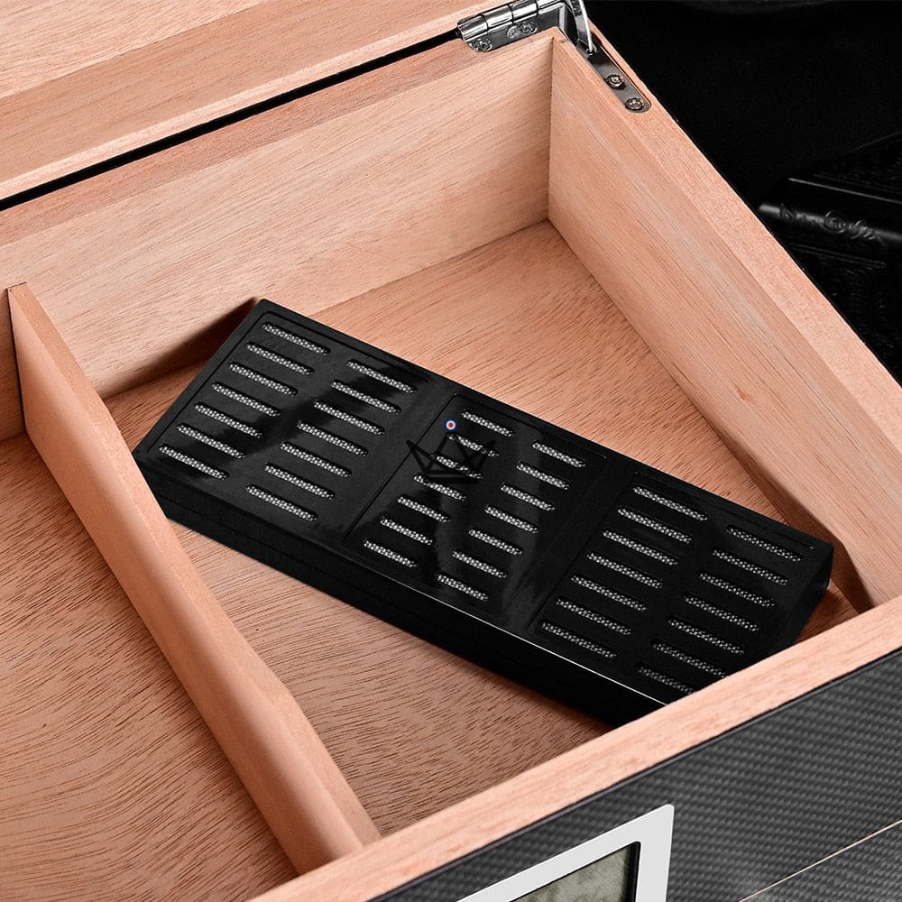 To maintain this humidity, essential for cigars, a humidifier is included.