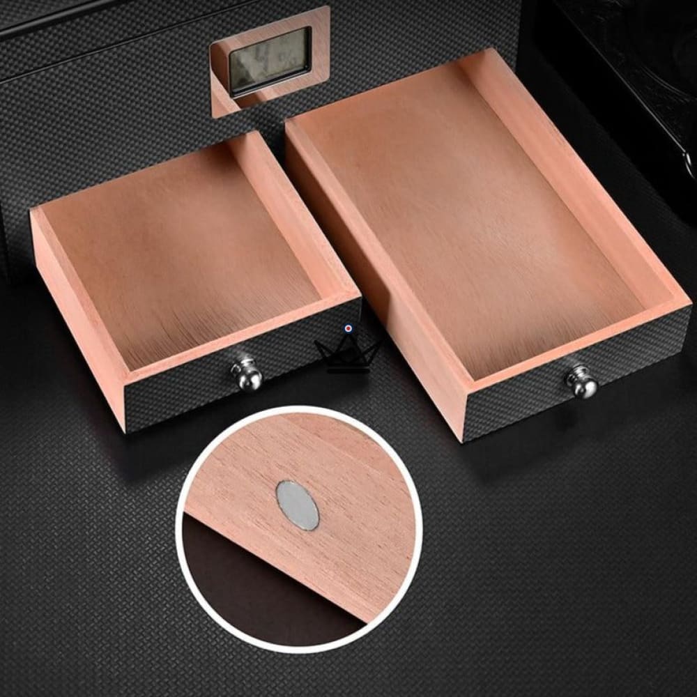 o Two drawers on the front: For organized and practical storage of your accessories and cigars.