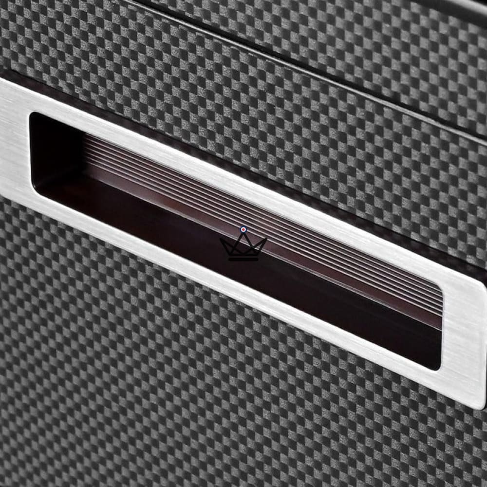 In its CARBON version, your cellar will be entirely covered in carbon fiber on each of its faces, while in its ROSE WOOD version it will be rosewood.