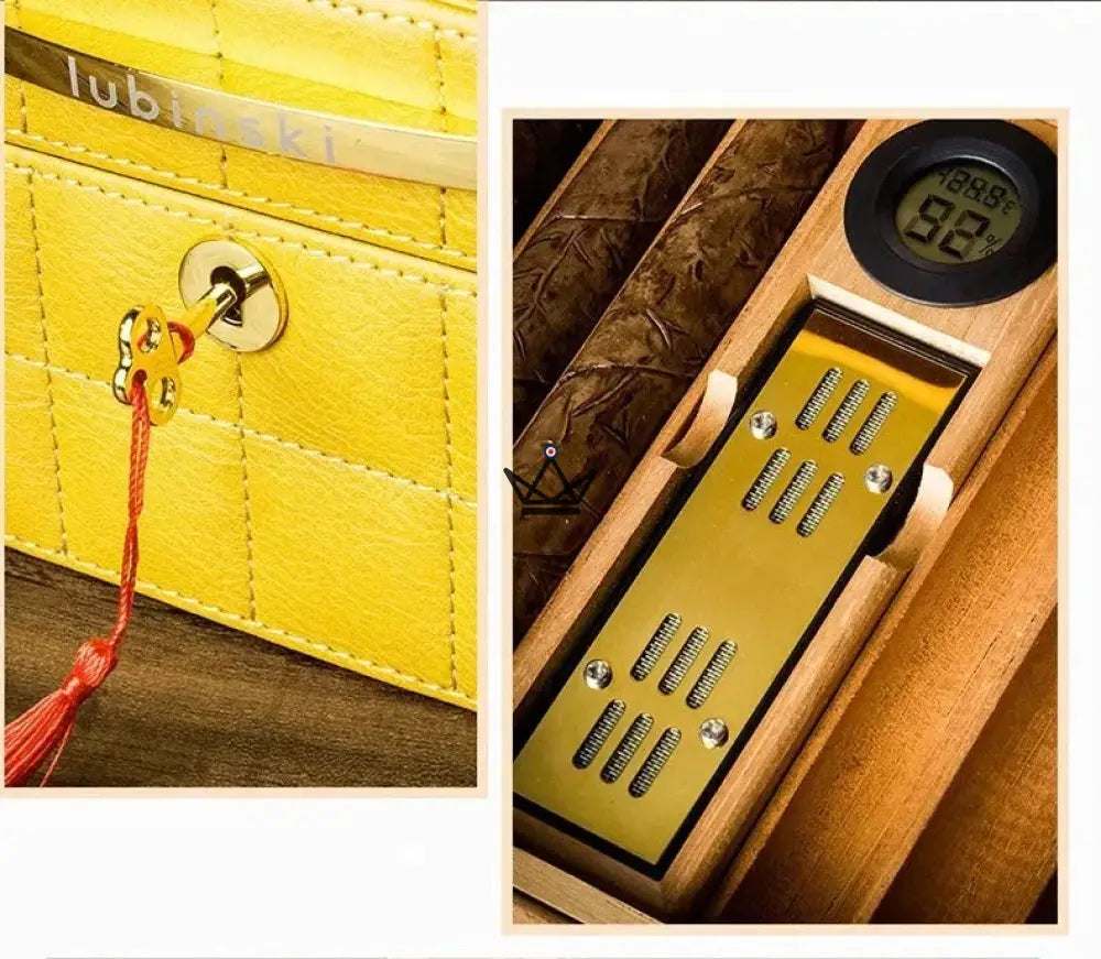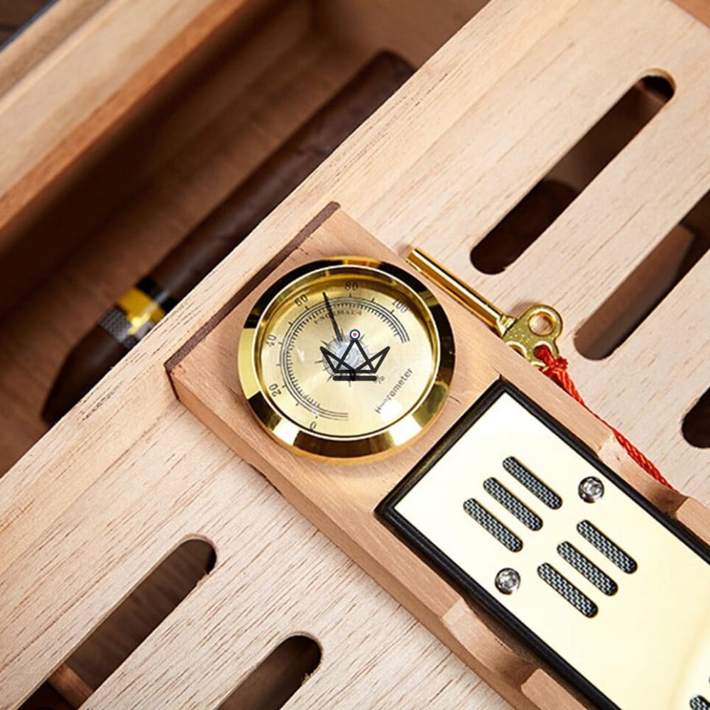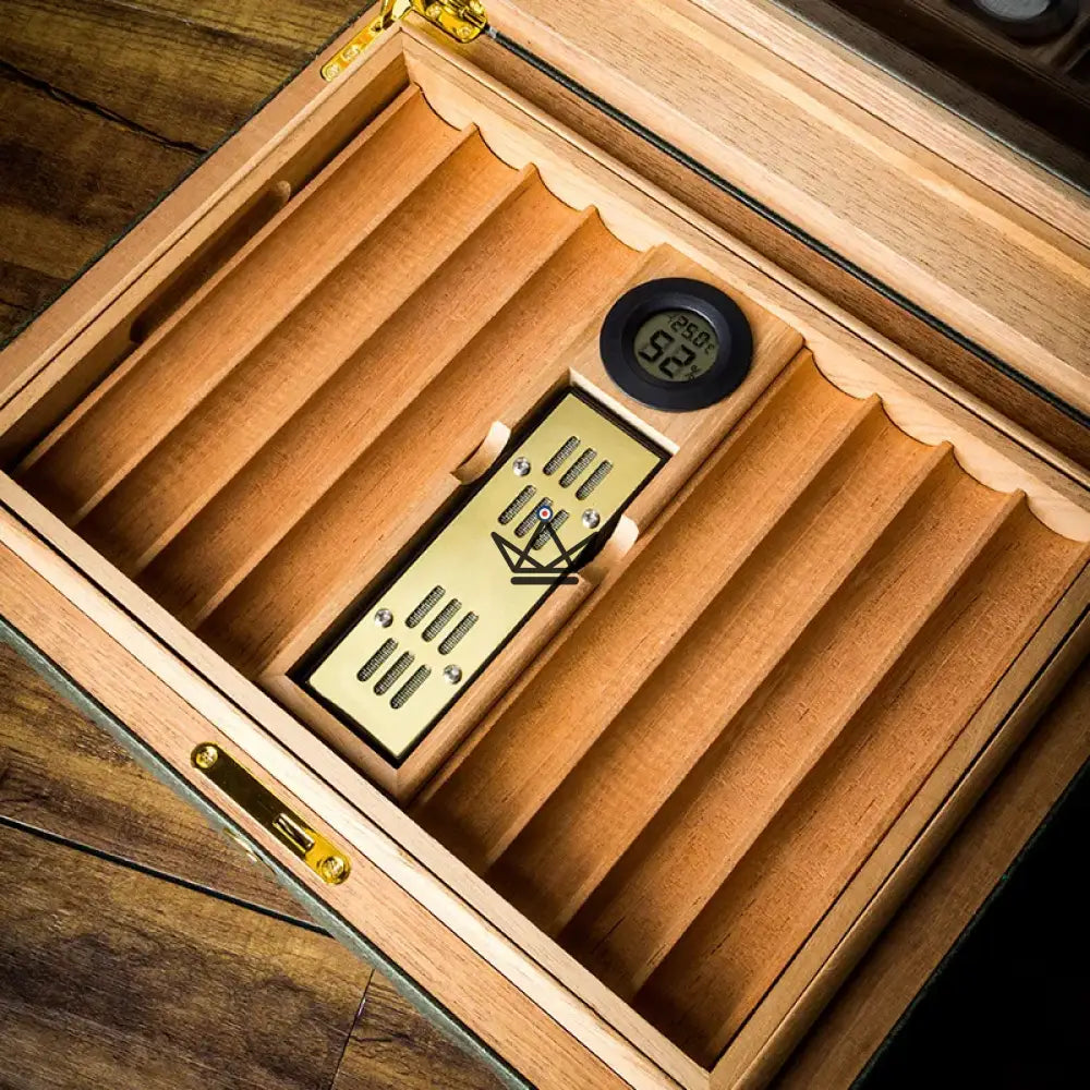 With a capacity of approximately 50 cigars, this humidor will allow you to preserve and showcase your collection of favorite cigars. The cedar wood used in its construction is an ideal choice for storing cigars, as it offers natural humidity regulating properties and even adds subtle aromatic nuances to your cigars.