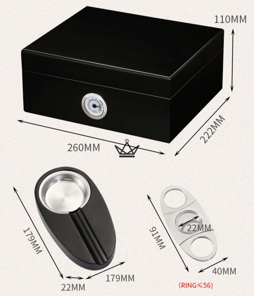 With its generous capacity that can accommodate up to 50 cigars, this humidor guarantees optimal storage conditions to preserve the quality and flavor of your precious cigars. Carefully crafted from premium Spanish cedar wood, it provides an ideal environment for aging and preserving your cigars. Its built-in humidifier and high-precision needle hygrometer provide precise humidity control, guaranteeing perfect freshness with every tasting.