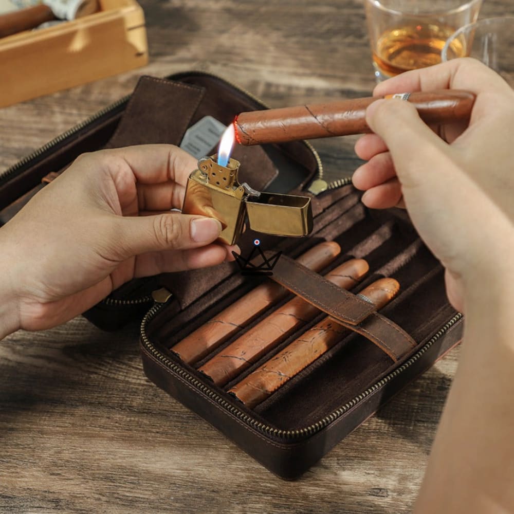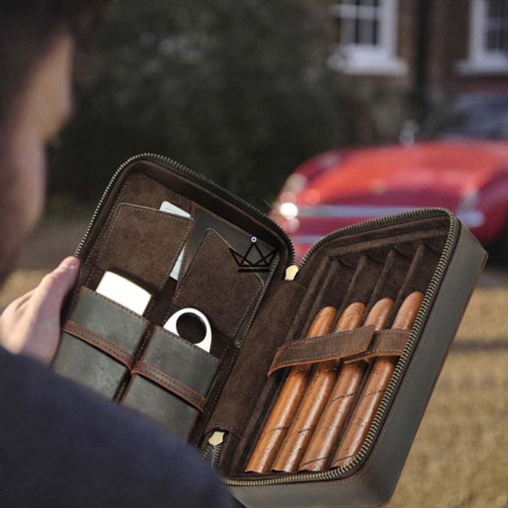 Whether you are on a business trip or on vacation, this genuine leather travel case for men will allow you to enjoy your favorite cigars anytime, anywhere.