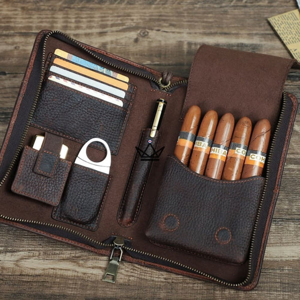 Reliable Zipper: The case closes securely with a sturdy zipper that keeps your cigars and accessories in place, protecting them from moisture and shock.