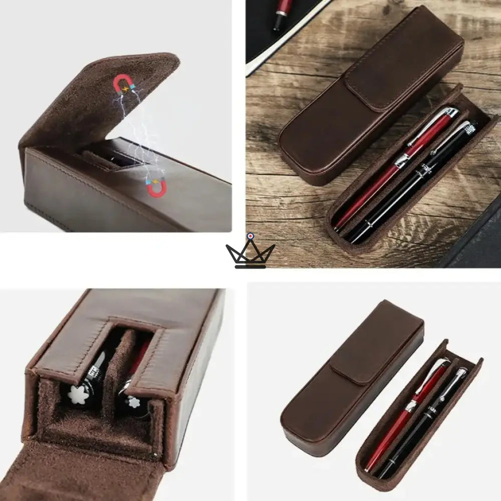 Discover our elegant genuine leather fountain pen case, Voyageur Magnus, a sophisticated and practical accessory for men and women. Carefully designed and handcrafted, this case offers refined protection for your favorite pens.