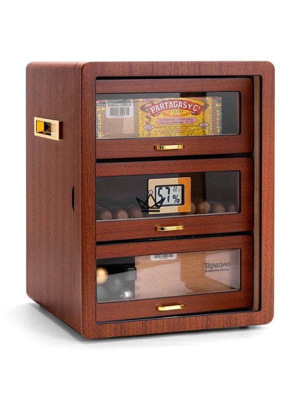 Fabriquée avec soin à partir de bois de cèdre espagnol de qualité supérieure, NOCTURIS assure une conservation optimale de vos cigares grâce à son système de contrôle de l'humidité et à ses trois tiroirs.