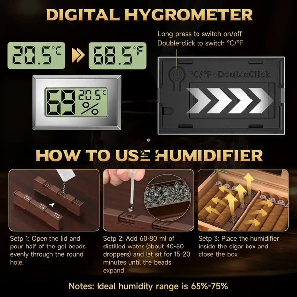 L’hygromètre digital intégré vous permet de vérifier l’humidité en temps réel en °C ou °F.