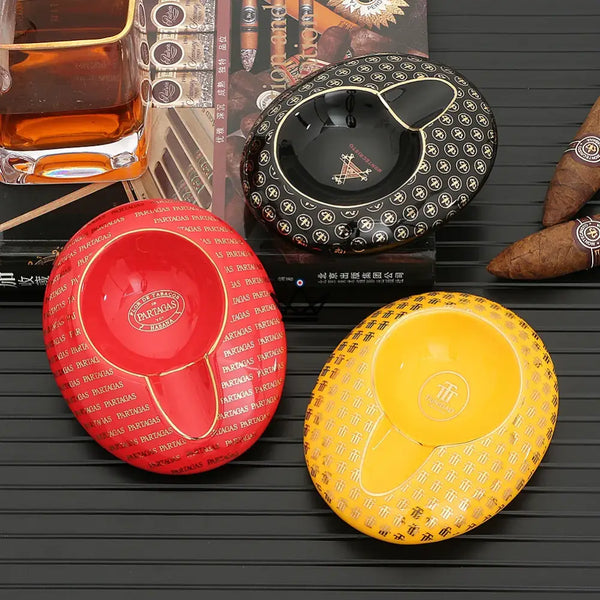 Le cendrier Solo King est conçu pour un usage individuel et est disponible en trois coloris distincts : Noir, Rouge et Jaune. Chaque modèle est orné de motifs élégants et de finitions dorées, apportant une touche de prestige à votre espace de détente.