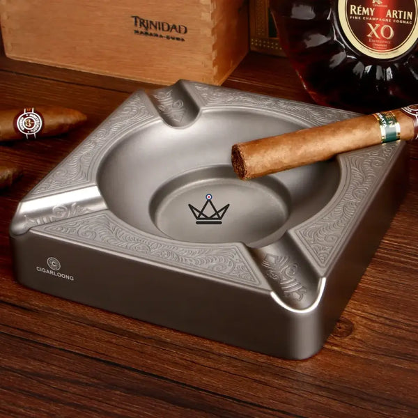 Ce cendrier à cigares de haute qualité allie élégance et fonctionnalité, idéal pour la maison, le bureau ou les clubs de cigares. Fabriqué en titane, il est durable et résistant aux rayures. Son design carré rétro cubain, orné de motifs gravés, ajoute une touche de sophistication à votre espace.