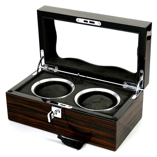 Chaque emplacement pour montre est cerclé d'un cercle de métal brillant qui ajoute une touche de luxe à la boîte. Les montres sont maintenues en place avec un mécanisme de retenue doux pour éviter tout risque de rayure ou de dommage.