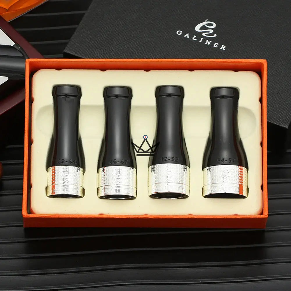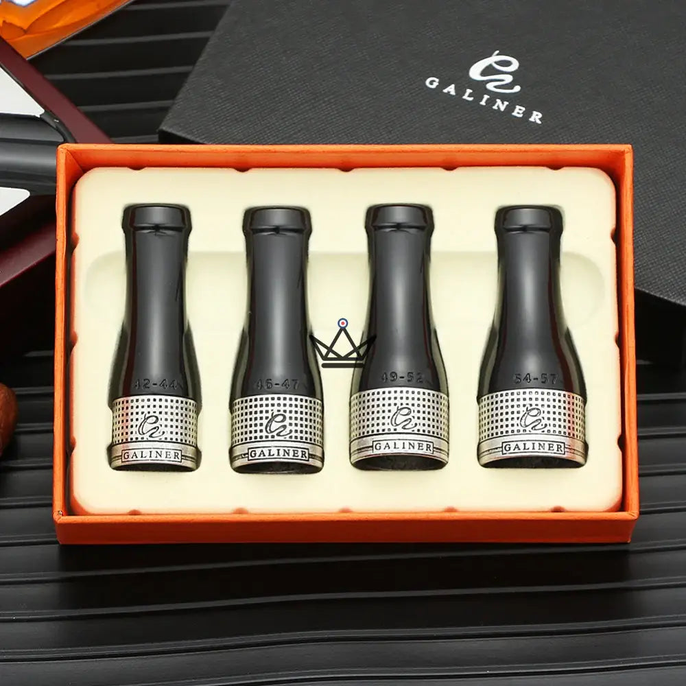 Avec Aristocap, transcendez les plaisirs du cigare grâce à un assortiment d'embouts aussi fonctionnels que raffinés. Chaque lot est composé de quatre tailles distinctes – 42/44, 46/47, 49/52, 54/57 – conçues pour s'adapter à l'éventail complet des anneaux de cigares Cohiba et autres, assurant une expérience personnalisée et confortable pour chaque amateur.