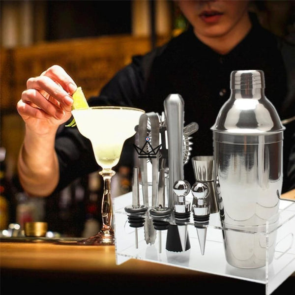 Ce kit complet de barman vous permettra de réaliser des cocktails professionnels chez vous, que ce soit pour impressionner vos invités lors de soirées ou pour vous faire plaisir avec vos propres créations. La combinaison d'accessoires de qualité et du support acrylique ajoutera une touche d'élégance à votre bar ou à votre cuisine.