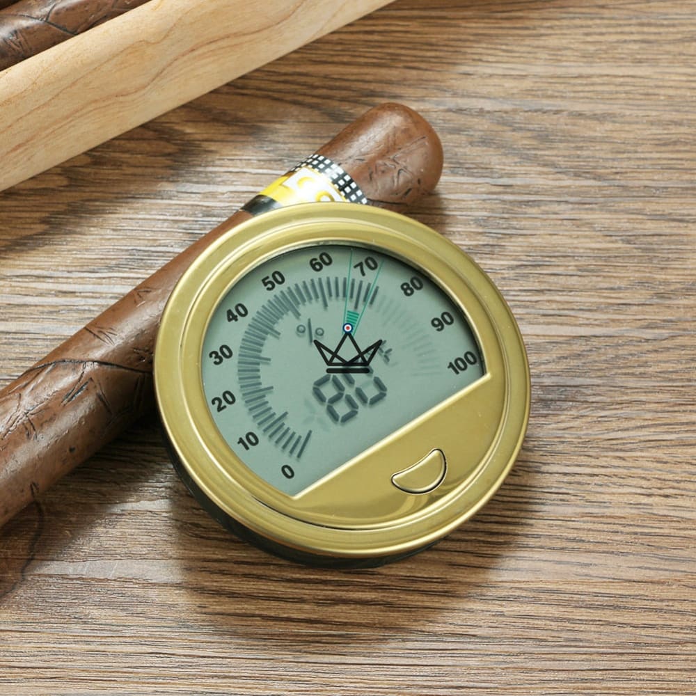 Design Élégant : Disponible en élégantes finitions or ou argent, cet hygromètre ajoute une touche de sophistication à votre collection d'accessoires pour cigares.