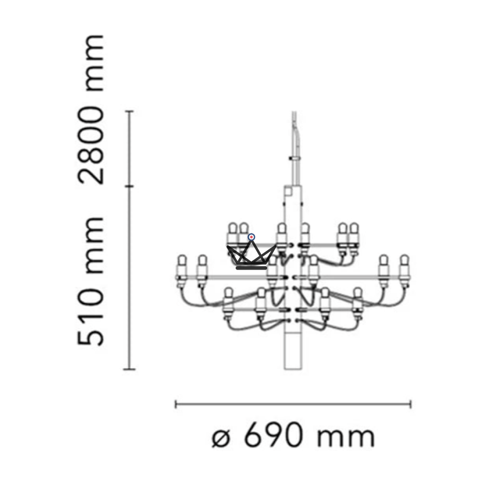 - 18 ampoules : 69 cm de largeur x 51 cm de hauteur