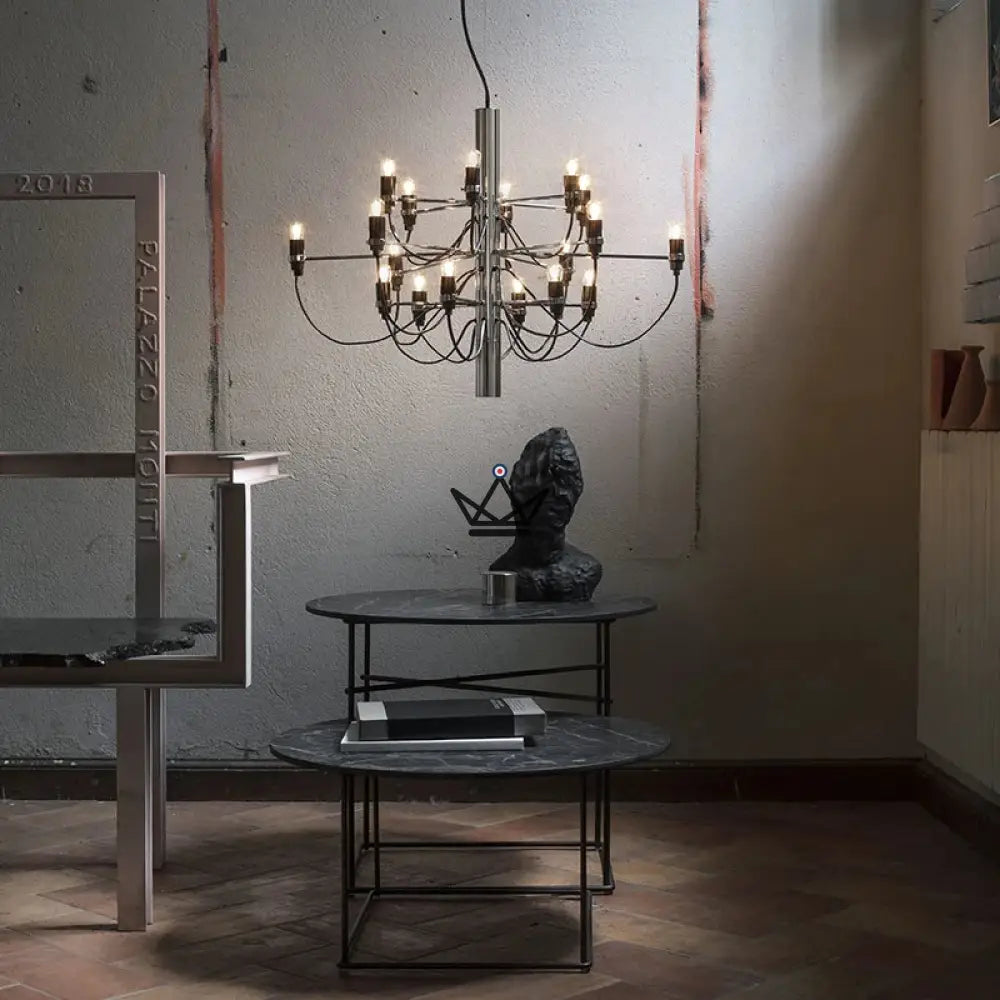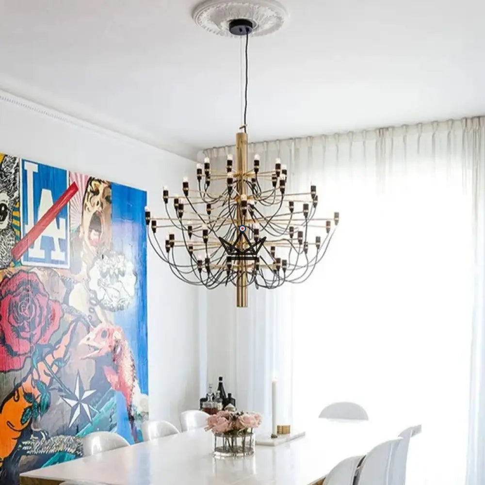Avec ses multiples ampoules disposées en étoile, ce luminaire crée un effet spectaculaire et illumine votre pièce de manière homogène. Disponible en trois tailles différentes, il s’adapte parfaitement à n’importe quelle pièce, qu’il s’agisse d’un salon spacieux, d’une salle à manger élégante ou d’un hall d'entrée grandiose.