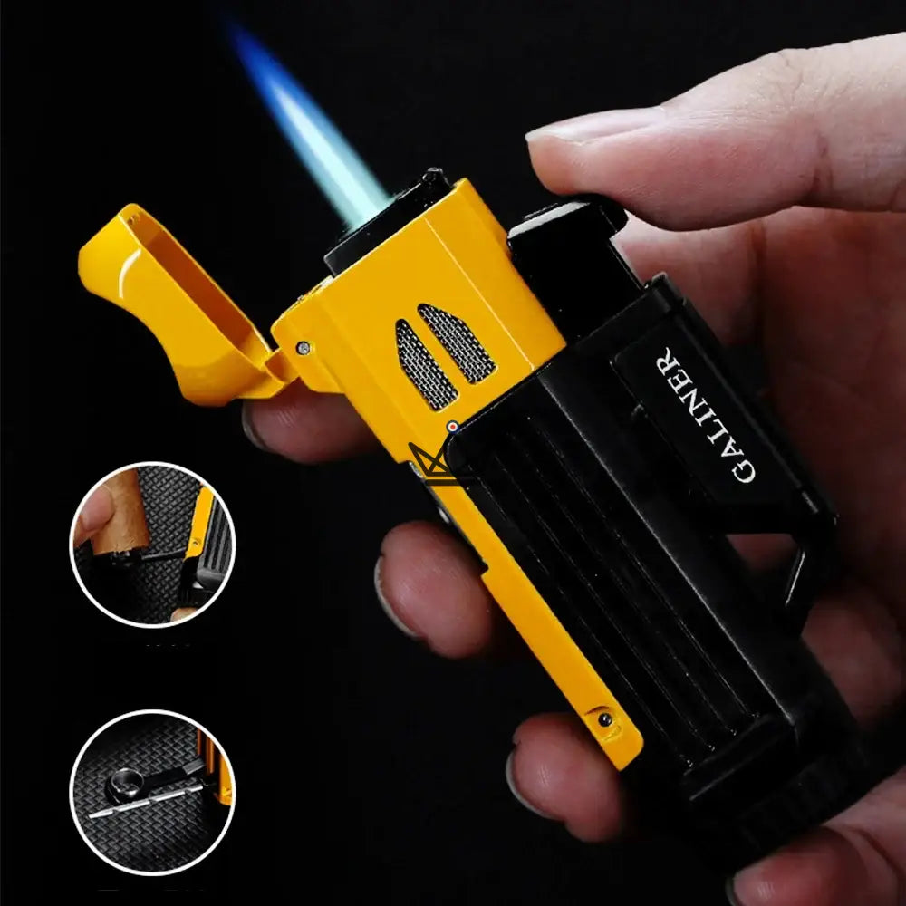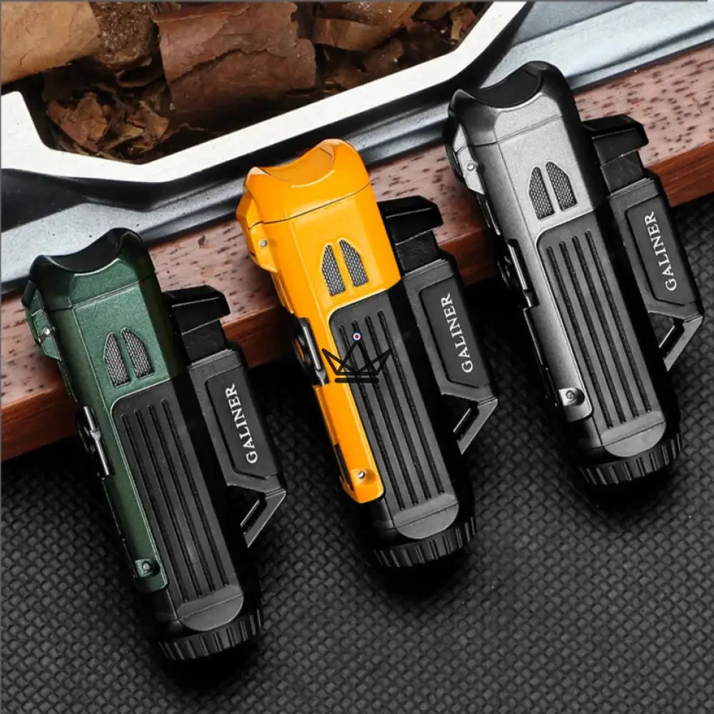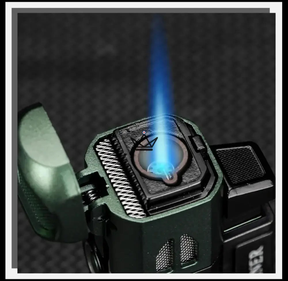 - Briquet torche : un briquet robuste en alliage de zinc, offrant une flamme réglable idéale pour allumer vos cigares en toute facilité.