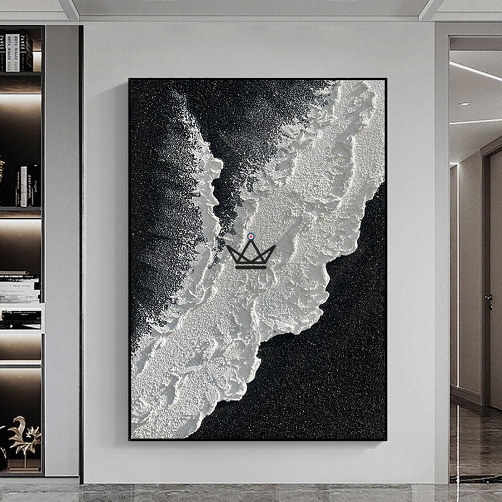 Cette toile de peinture abstraite en noir et blanc présente une vague 3D texturée, peinte à la main à l'huile. Elle est l'œuvre d'un artiste passionné qui a travaillé avec soin pour créer une pièce d'art moderne qui attirera tous les regards. Parfaite pour la décoration de votre salon, cette peinture abstraite apportera une touche de sophistication à votre espace de vie.