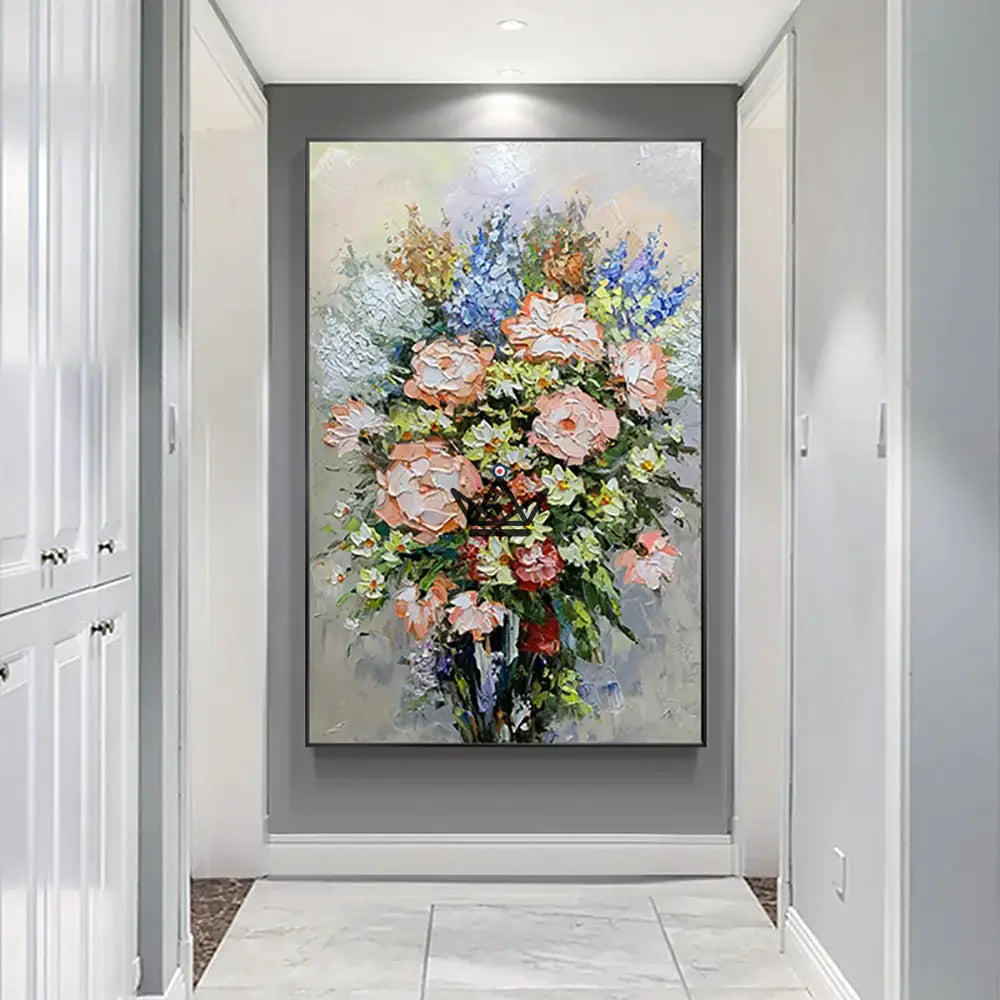 Jardin Printanier : Un vase débordant de fleurs multicolores, évoquant le renouveau et la fraîcheur du printemps. Cette toile est idéale pour apporter une note de gaieté et de couleur à votre décoration.