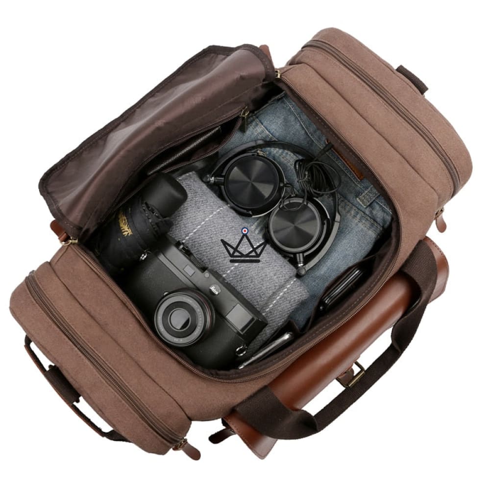 Le compagnon idéal de vos activités. Voyage, sport, week-end en amoureux ou en solo, ce sac de voyage style vintage vous accompagnera lors de tous vos déplacements.