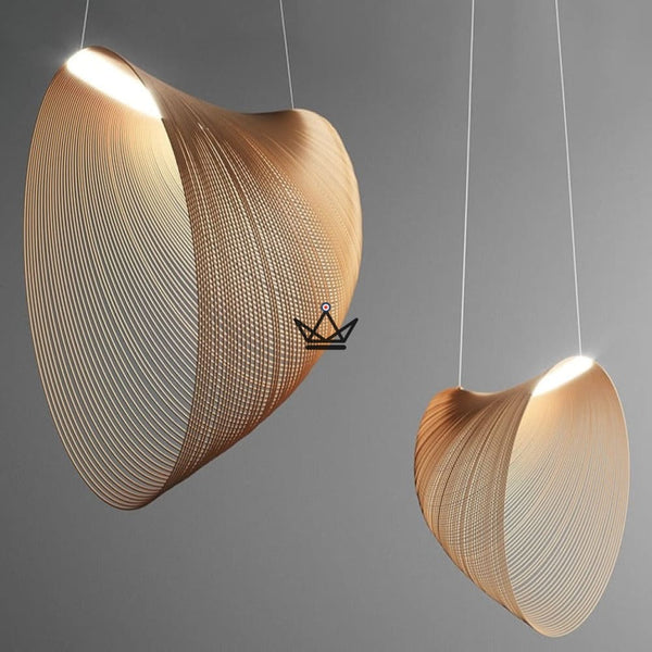 La lampe Celestial Illan est une œuvre d'art lumineuse qui se distingue par son design éthéré et vibrant. Inspirée de la lampe Illan de Luceplan, elle est composée d'un corps très léger en contreplaqué extrêmement fin et flexible, découpé au laser le long de lignes denses et équidistantes. La lampe est suspendue au plafond pour flotter dans l'air comme un astre éthéré, créant une ambiance élégante et relaxante.